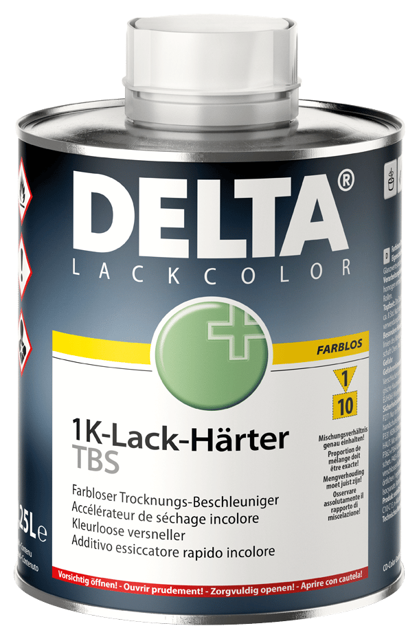 Een keurloze droogversneller voor alkydharslakken die de chemische en mechanische bestendigheid verhoogt en tegelijkertijd dient voor het instellen van de spuitviscositeit van DELTA Buntdeltal en andere kunstharslakken