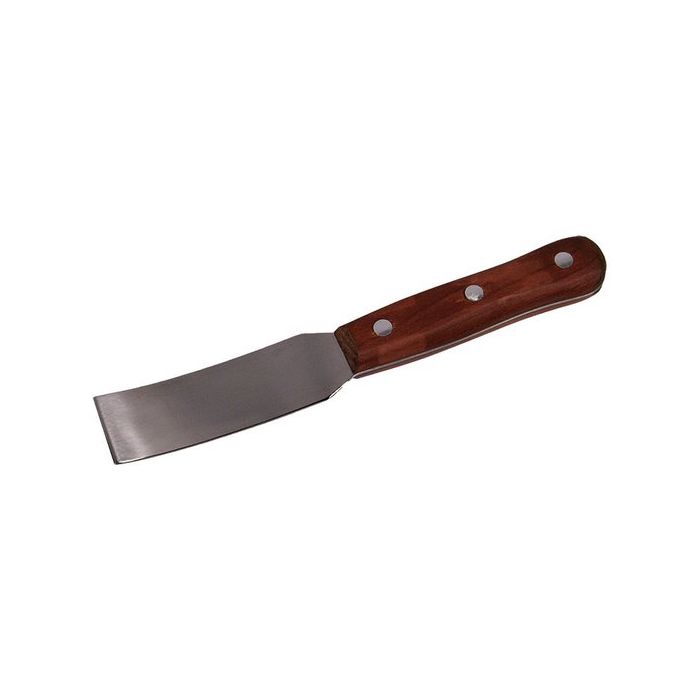 Licht gebogen lemmet. Voor aluminium en stalen sponningen. Opgelegd houten heft, drievoudig geklonken.