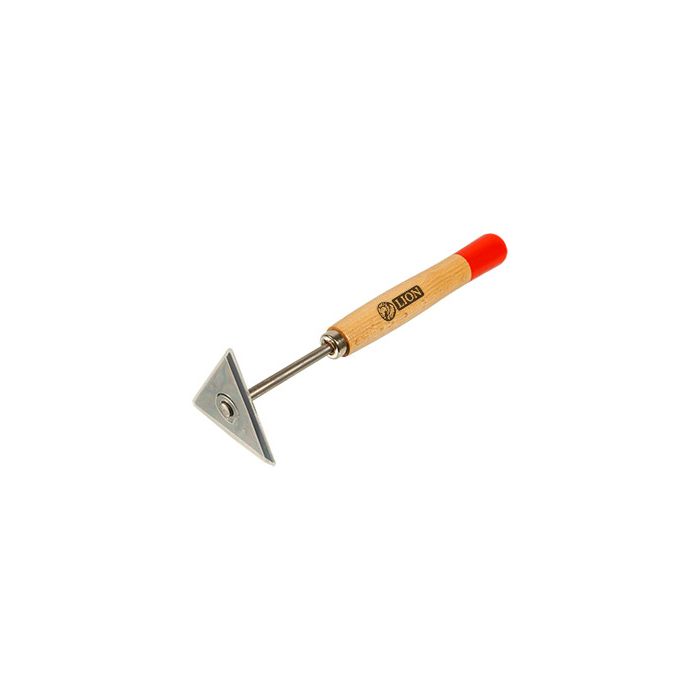 De Verfschraper van Lion profielvorm driehoek is een professionele bossingschraper. Blad van hoogwaardig geblauwd gereedschapsstaal. Blank gelakt houten heft met rode punt.
