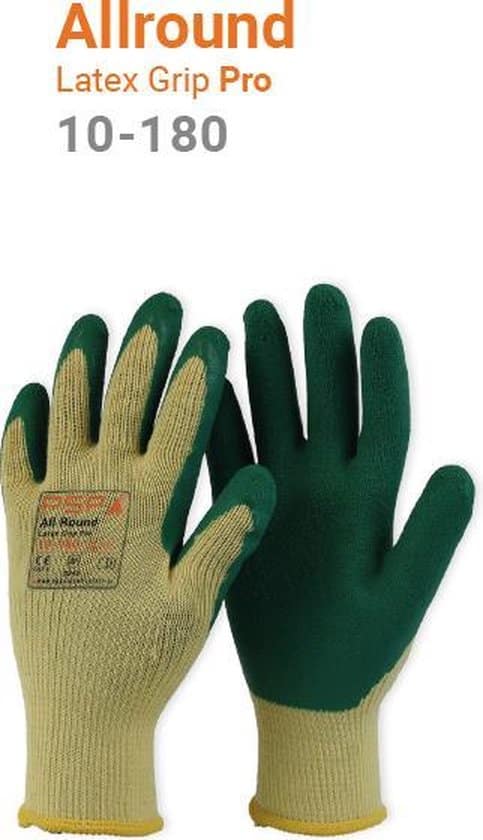 De PSP Latex Grip Pro 10-180 is een handschoen met een 10G poly/cotton liner bedekt met een sterke latex coating. Een soepele, robuuste handschoen met een goede vingergevoeligheid en behendigheid. Door de sterke liner en coating heeft de handschoen uitstekende EN388 uitslagen. De ademende rug zorgt voor goede ventilatie. Deze handschoen staat bekend om zijn uitstekende grip in bouw- en agrarische werkomgevingen. Geen irritatie door naden die in contact komen met de huid. Is zeer geschikt voor de meer eisende gebruiker. Artikel PSP Latex Grip Pro 10-180 is getest en gecertificeerd conform de Europese richtlijn 89/686/EEC en de EN-normen EN420 /EN388.