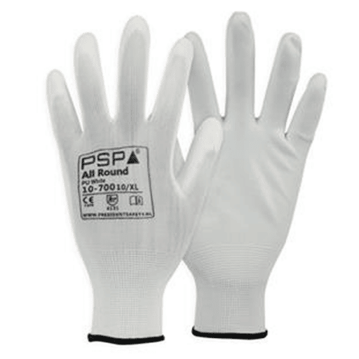 De PSP Allround PU White 10-700 is een handschoen met een 15G nylon liner met een witte PU antislip coating op de palm. Op de rug en vingers is de handschoen opengewerkt, wat zorgt voor goede ventilatie en daardoor een uitstekend draagcomfort. De open PU coating zorgt voor een goede grip met droge en olie-achtige werkzaamheden. De PSP allround Pu white handschoen is geschikt in de volgende sectoren zoals schilder en stucadoor, plafondlegger, bouw, constructie, logistiek, industrie, transport, assemblage en installatietechniek. Artikel PSP PU White 10-700 is getest en gecertificeerd conform de Europese richtlijn 89/686/EEC en de EN-normen EN420 / EN388.