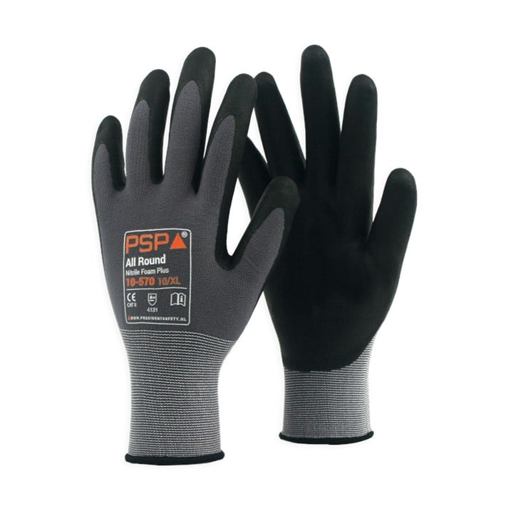 De PSP Allround Nitrile Foam 10-510 is een handschoen met een 13G polyester liner bedekt met een niet-ademende nitril foam coating op de palm. Op de rug en vingers is de handschoen opengewerkt, wat zorgt voor goede ventilatie en daardoor een uitstekend draagcomfort. De gesloten nitril coating zorgt voor een goede grip op droge, natte en olie-achtige ondergronden. De coating laat geen vloeistof door.