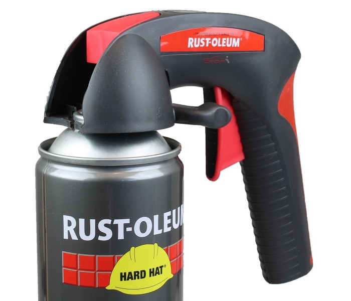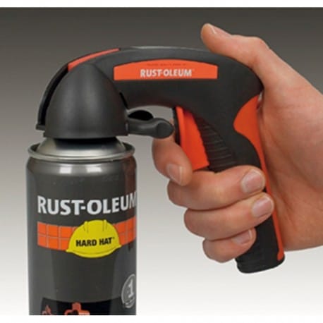Rust Oleum Comfort Grip helpt u bij het verwerken van een spuitbus. De spuitbus klemt u in de comfort grip en met de trekker kunt u de spuitbus laten spuiten.