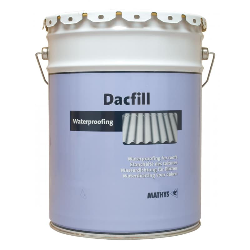 Rust-Oleum Dacfill Dakcoating is een duurzame waterdichte coating voor schuine daken. Rust-Oleum Dacfill vormt een blijvend elastische, naadloze afdichting voor hellende daken. Rust-Oleum Dacfill is geschikt als waterdichtingssysteem voor daken, slabben, etc. met een helling van minimaal 5%. zoals schuine daken van bitumen, cementgebonden, asfalt en kunststof.