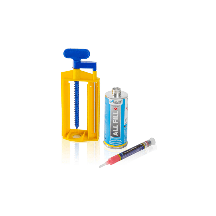 Woodcap All Fill is een uitstekende reparatiepasta die makkelijk te verwerken is en stevig hecht, verpakt in een handige kleine verpakking. Het is ideaal voor zowel meerdere kleine reparaties als รฉรฉn grotere klus met een diepte van 3-30 mm. Deze pasta is speciaal ontwikkeld voor het repareren van houten ondergronden, zowel binnen als buiten. Het hecht uitstekend op gezonde ondergronden en kan na uitharding goed worden geschuurd, geschaafd, geboord en gespijkerd. Het bijbehorende doseerapparaat zorgt ervoor dat altijd de juiste hoeveelheid en mengverhouding wordt gedoseerd, wat zorgt voor constante kwaliteit en verwerkbaarheid. Bovendien heeft het product minimale krimp.