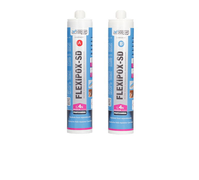 Woodcapยฎ Flexipox SD A+B is een duurzaam elastische 2-componenten reparatiecompound zonder oplosmiddel op basis van gemodificeerde epoxy.