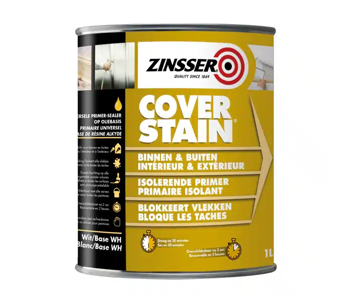 Zinsser Cover Stain is een universeel toepasbare oplosmiddelhoudende primer met vlek-blokkerende eigenschappen. Geschikt als primer en sealer. Ook voor buitengebruik. Kan overschilderd worden met acryl en alkydlakken.